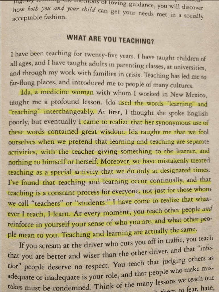 As I reflected on my client’s question, I recalled a story from Easy to Love, Difficult to Discipline by Becky A. Bailey, Ph.D. The book recounts how a medicine woman in New Mexico used the words learning and teaching interchangeably. Not because of any linguistic limitation, but because of a deep wisdom embedded in her perspective. What if learning and teaching are not separate acts, but an ongoing, reciprocal process? Bailey captures this beautifully: